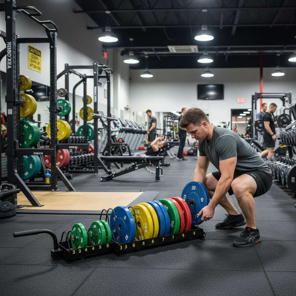 - Efficiently organizes bumper plates for easy access and storage.