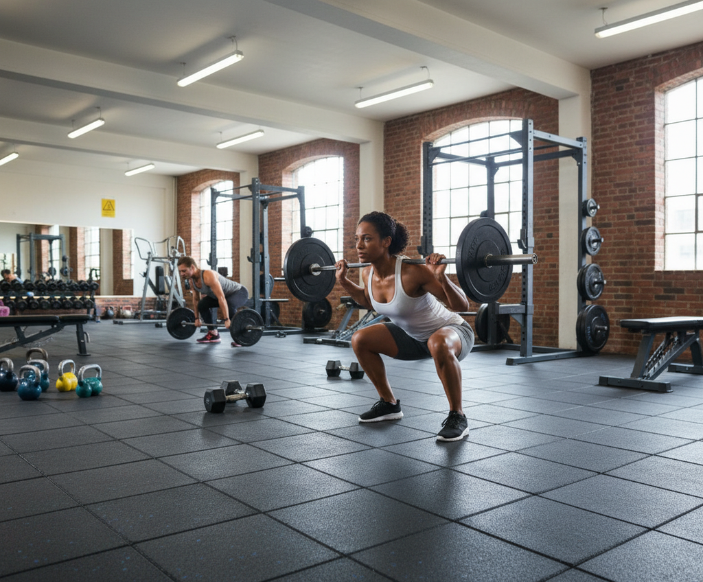 These 15mm rubber square gym mats are designed for home gyms, garage gyms, and small training spaces where durability, noise reduction, and floor protection matter. Featuring an attractive blue fleck finish, they offer a professional look without commercial overkill.