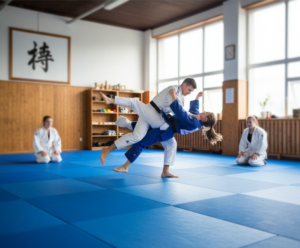 This mat is designed for judo training, providing a safe and supportive surface for various techniques and falls.